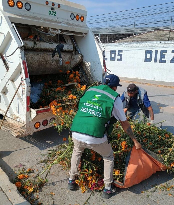 “Ya habíamos realizado un mantenimiento previo para retirar la basura acumulada, pero el volumen de desechos que se generó entre el comercio y las flores que se llevaron al panteón es considerable, estimado en unas 15 a 20 toneladas en estos días”, destacó Zamarripa.