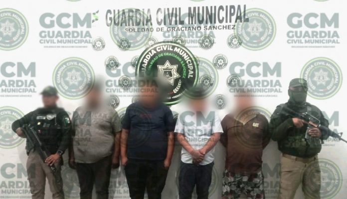 Cuatro hombres fueron detenidos por la Guardia Civil Municipal de Soledad de Graciano Sánchez, al ser sorprendidos desmontando partes del interior de un camión de transporte de personal, en la colonia San Felipe.