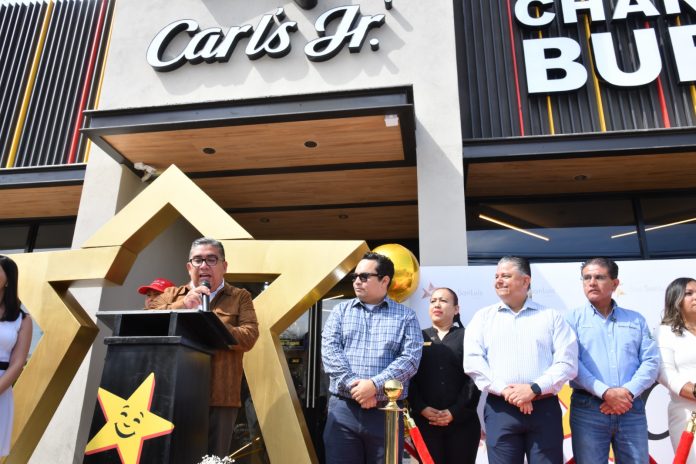 El Alcalde de Soledad de Graciano Sánchez, Juan Manuel Navarro Muñiz, encabezó esta mañana la inauguración de la segunda sucursal de la reconocida cadena Carl’s Jr. en el municipio, ubicada en la colonia San Felipe, destacando que esta apertura representa un símbolo del crecimiento económico, la seguridad y el aumento de poder adquisitivo de las familias soledenses.