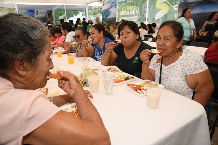 Una de las asistentes, Verónica Rodríguez, de la colonia La Lomita, reconoció el sabor tradicional del platillo de enchiladas que degustó, acompañada de sus ingredientes deliciosos, como frijoles, aguacate, cebolla y queso, además de bebidas y gorditas de la localidad Palma de la Cruz, ampliamente reconocidas por su sabor exquisito.