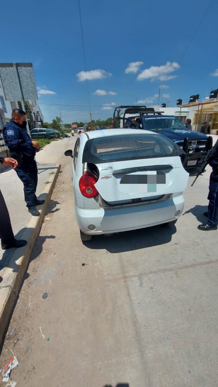 En la calle Fausto Nieto esquina con calle Destino frente al inmueble marcado con el número 120 de la colonia Buenaventura se tiene contacto visual con un vehículo compacto Matiz en color blanco mismo que con base a una consulta arroja reporte de robo.