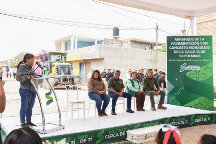 El Alcalde de Soledad de Graciano Sánchez, Juan Manuel Navarro Muñiz dio el banderazo de arranque a la pavimentación con concreto hidráulico de la calle 13 de Septiembre, en el tramo que va de calle 5 de Mayo a 18 de Marzo, en la colonia Primero de Mayo, con una inversión de casi dos millones de pesos, beneficiando de forma directa e indirecta a más de tres mil 800 habitantes.
