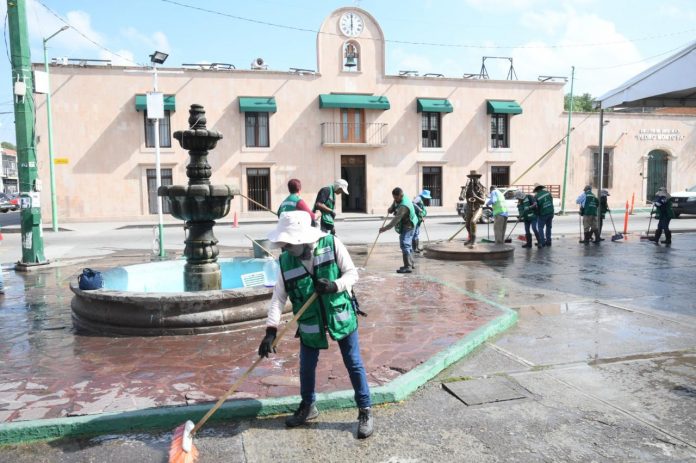 El Gobierno Municipal de Soledad de Graciano Sánchez, a través de la Dirección de Servicios Municipales, llevó a cabo trabajos de limpieza y rehabilitación de la Plaza principal, a fin de mantener espacios dignos y seguros para las familias y las y los visitantes, mediante acciones que forman parte de la política social de mantenerse cerca a la población, escuchando sus necesidades y ofreciendo entornos limpios y funcionales, tal como lo ha instruido el Alcalde Juan Manuel Navarro Muñiz.