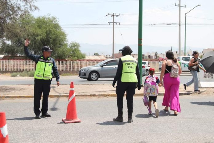Para dar continuidad al servicio y apoyo que se brinda a peatones, estudiantes, maestros y ciudadanía en general que cruza en Bulevar Valle de Los Fantasmas a la altura del colegio Valladolid, Policía Vial de Soledad de Graciano Sánchez reforzará presencia y trabajo a favor de transeúntes por la contrucción del puente peatonal, cuya obra comenzará este viernes 8 de noviembre.