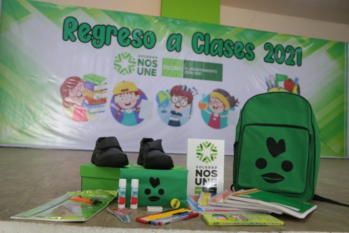El Ayuntamiento de Soledad a través de la dirección de Infraestructura Municipal, informó que la entrega del programa de Regreso a Clases lleva un avance del 94%, que se traduce en la entrega de 33 mil apoyos de útiles escolares, mochilas y calzado.