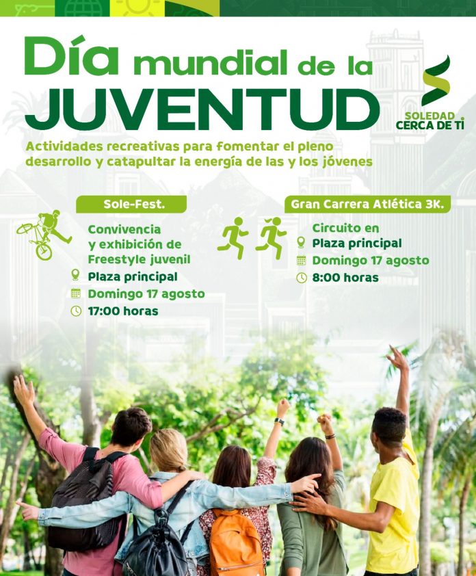 El Ayuntamiento de Soledad de Graciano Sánchez, siguiendo las instrucciones del Alcalde Juan Manuel Navarro Muñiz, invita a toda la población a ser parte de las actividades que se realizarán este domingo 17 de agosto para conmemorar el recién Día Internacional de la Juventud 2025, una fecha que busca visibilizar la fuerza, talento y creatividad de las y los jóvenes, así como fortalecer el tejido social a través del acercamiento con el deporte, la cultura y la convivencia sana.