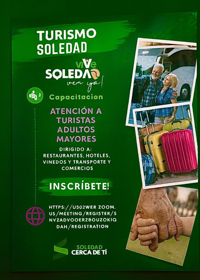 La capacitación impulsada por la Dirección de Turismo Municipal se desarrollará el próximo 26 de noviembre, de 13:00 a 15:00 horas, a través de la plataforma Zoom: https://us02werzoom.us/meeting/register/snvzadvooerzbouzokiqdah/registration, permitiendo que personal de hoteles, restaurantes, viñedos, comercios y transporte acceda sin costo a un proceso de profesionalización con validez oficial; con ello, el municipio reforzará la preparación de quienes diariamente reciben a visitantes y familias soledenses.