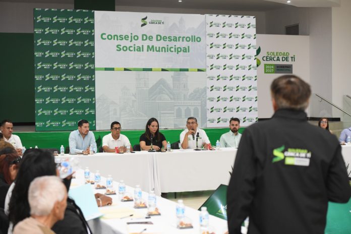 Durante la quinta sesión del Consejo de Desarrollo Social Municipal, Juan Manuel Navarro Muñiz, Alcalde de Soledad de Graciano Sánchez, anunció la continuidad de más obras urbanas para el crecimiento y estabilidad social y económica del territorio local, con un impulso imparable entre el Gobierno municipal y el Gobierno del Estado, a través de una mancuerna institucional que genera resultados de largo alcance para todas las familias.